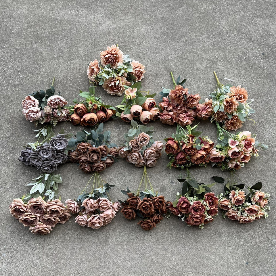 Fleurs artificielles en soie couleur café automnal, rétro, mousse moka, pour arrangements floraux de mariage, types de fleurs mélangés, vente en gros