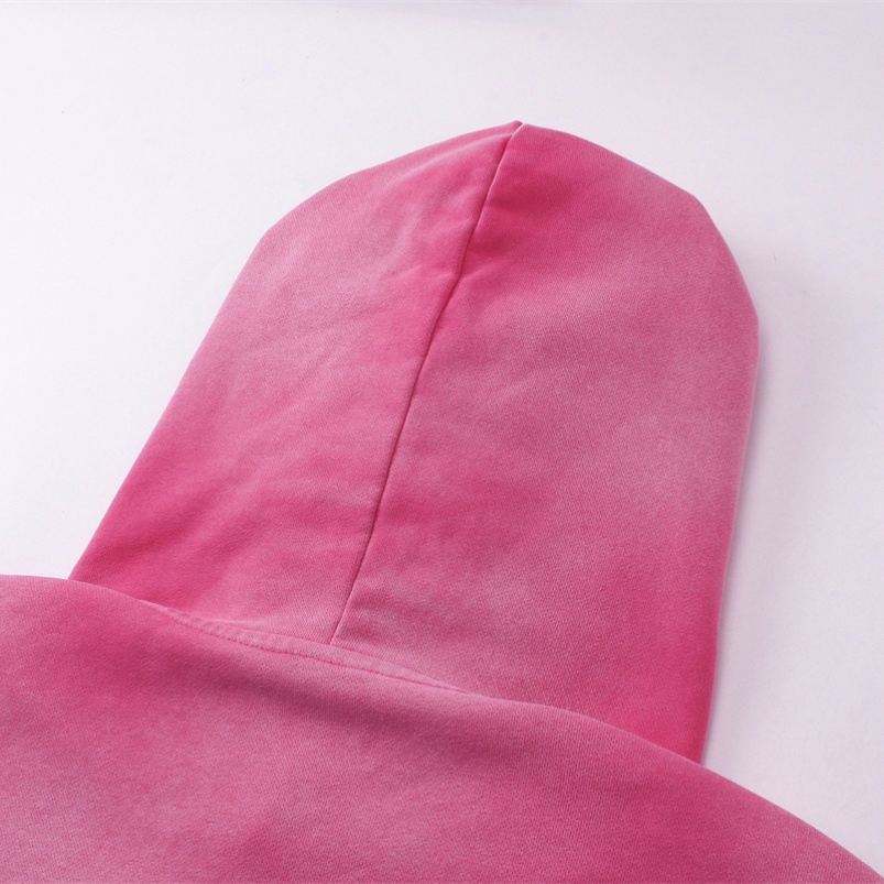 Automne conception personnalisée en détresse trou Vintage à capuche col rond pull décontracté surdimensionné épais rose en détresse trou Vintage à capuche