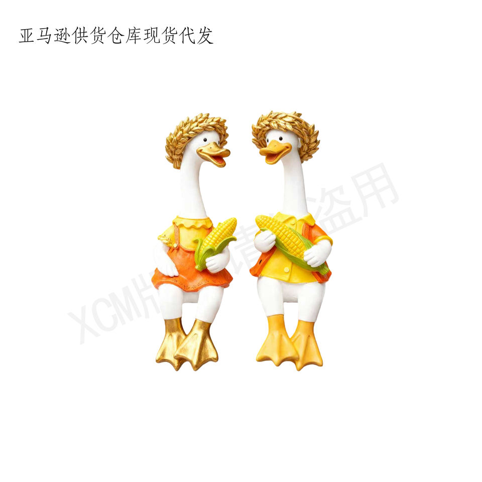 Statues de canards d'automne en paire - Sculpture personnalisée en polyrésine, Décoration artisanale en résine pour ferme moderne et ornement de saison de récolte