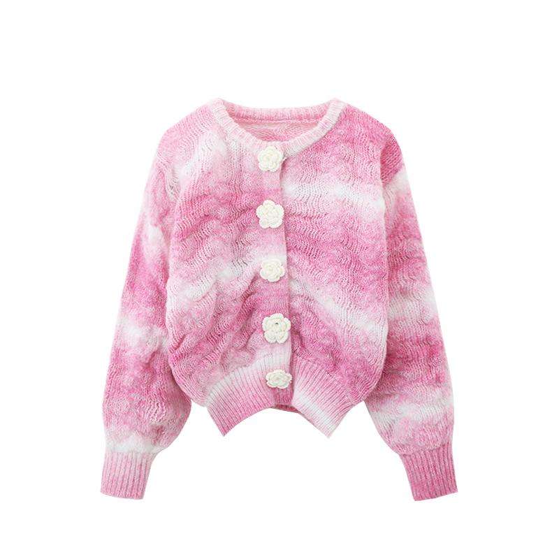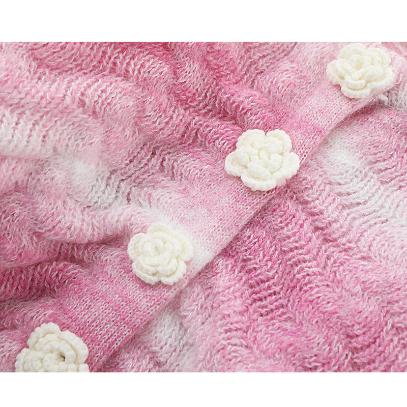 Product Name:Autumn dyed floral buttons women's chunky knit cardigan sweater coat