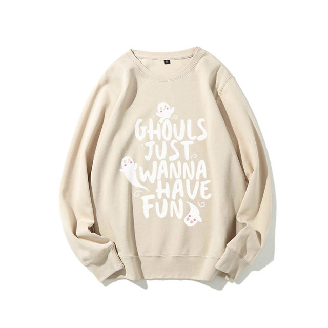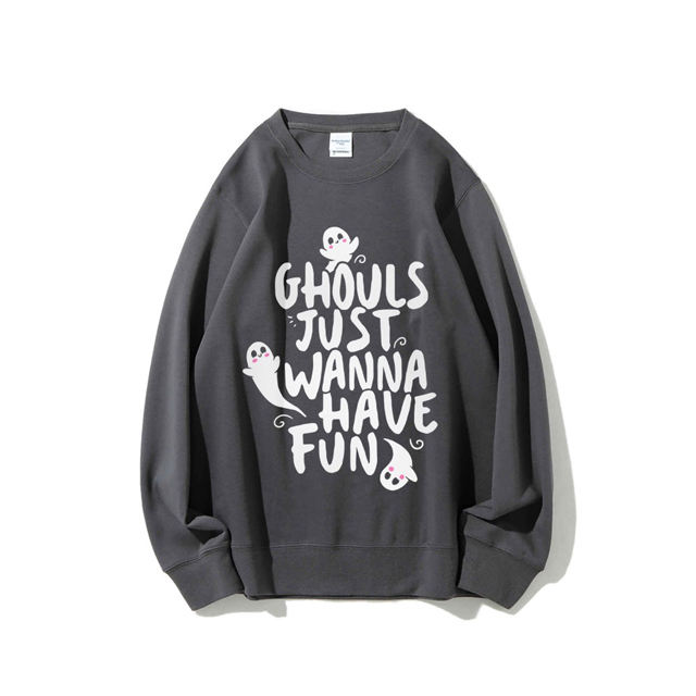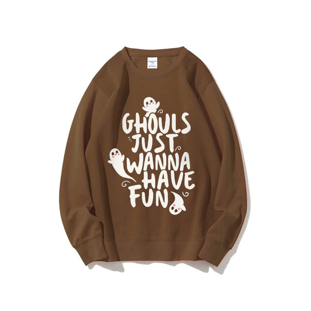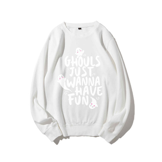 Pull tricoté pour femme à motif fantôme d'Halloween 'HAVE FUN', imprimé sur le devant, coupe ample décontractée, infroissable, respirant, en Spandex/Coton