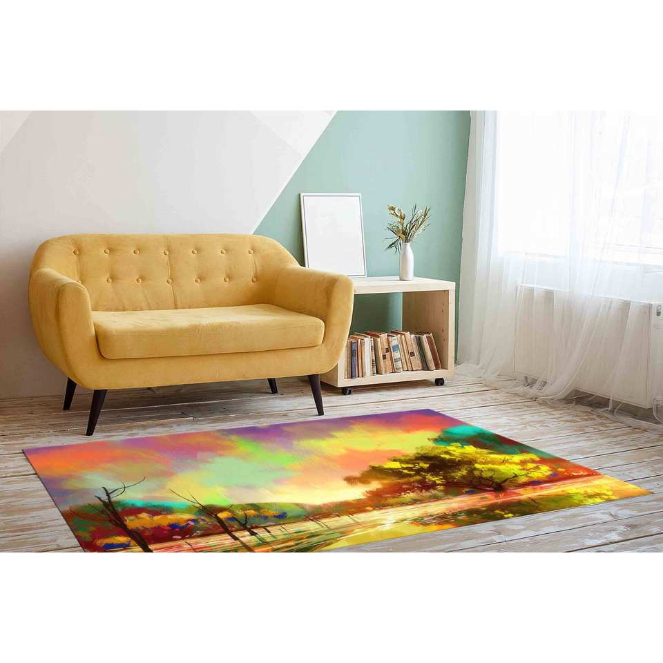 Tapis paysage d'automne, tapis imprimé, forêt, arbre, nature, abstrait coloré, tapis fin non tissé