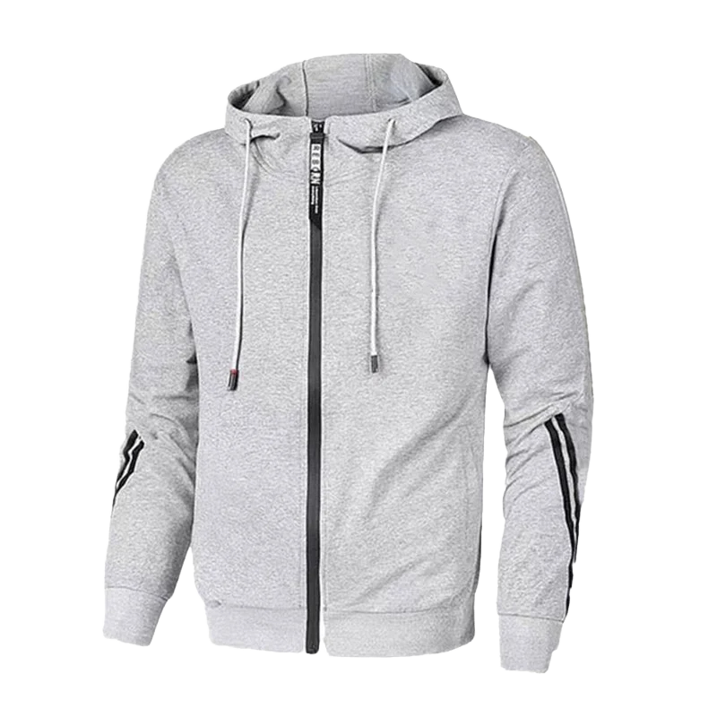 Autumn Men's Custom Breathable Zip-Up Hoodie Tracksuit Set Windproof 100% Cotton Solid Pattern Plain Dyed Techniques Slim Fit
