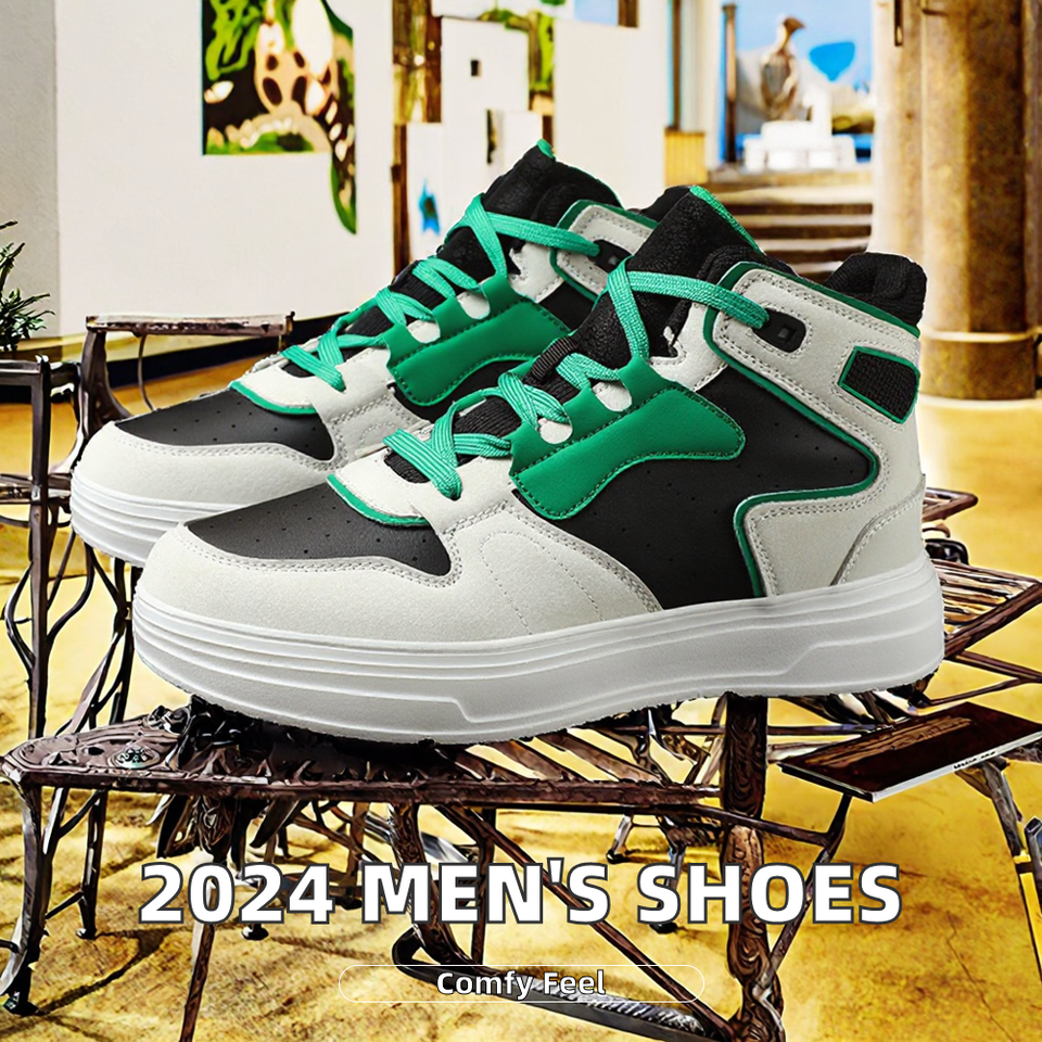 Chaussures de skate montantes blanches pour homme, automne-hiver, en cuir de haute qualité, à lacets, décontractées, tendance, confortables, avec semelle EVA souple et maille respirante