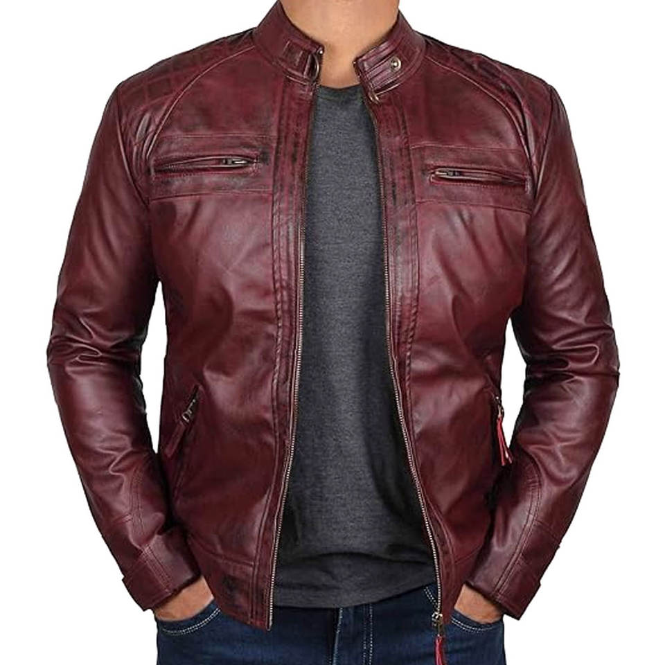 Automne hommes veste en cuir populaire High Street Style avec col montant et fermeture éclair 100% toile vente en gros veste de mode pour hommes