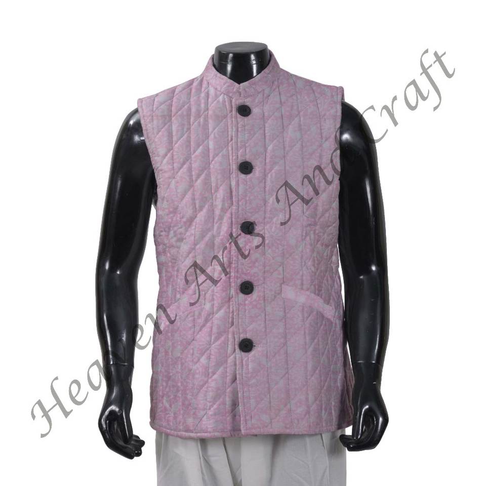 Autumn Men's Short Warm Quilted Cotton Jacket Fabric Handmade Block Printed Knitted Breathable