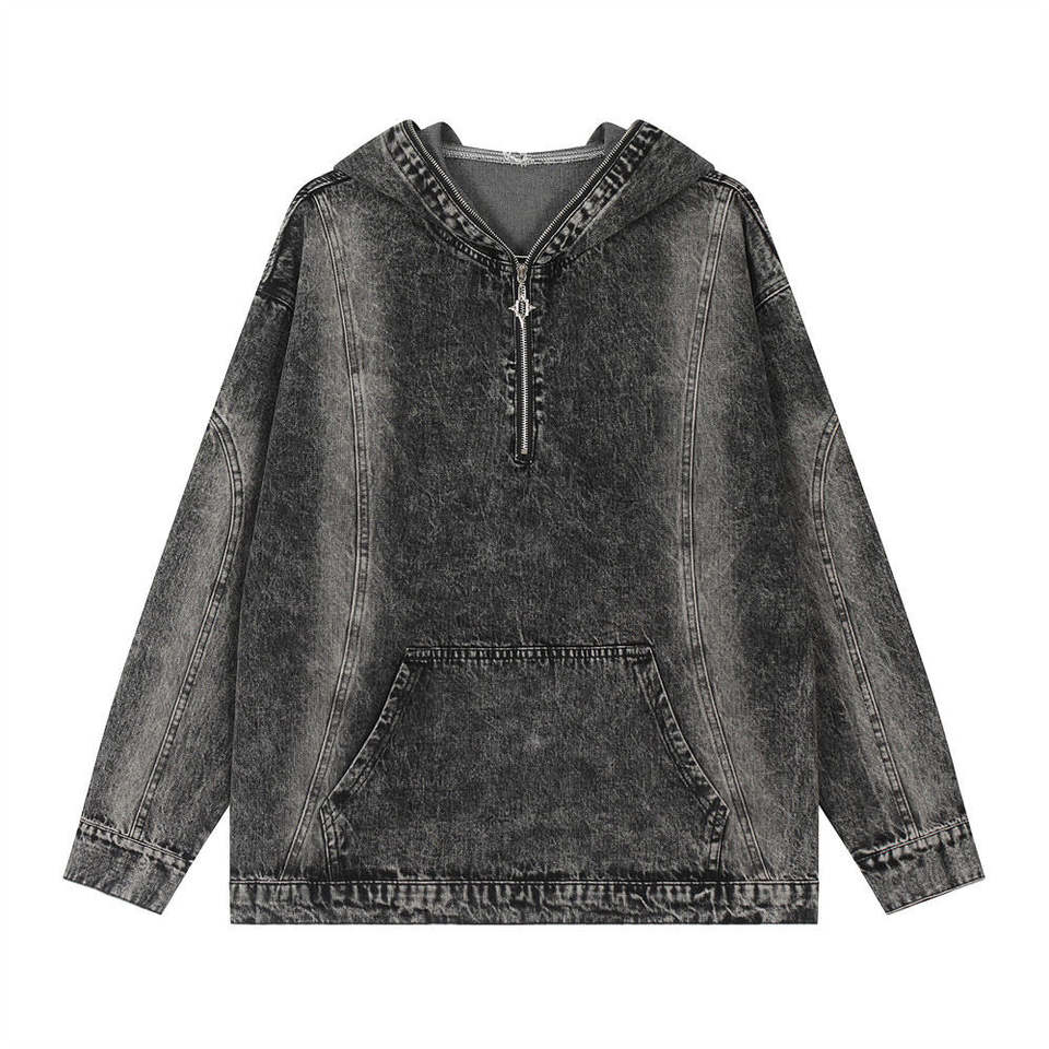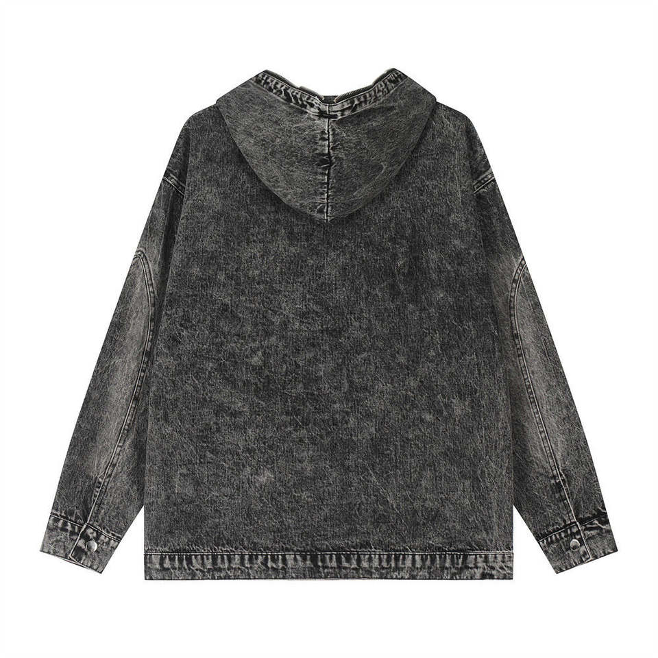 Veste en jean délavé pour homme avec capuche imprimée motif dessin animé, 100 % coton tissé, collection automne