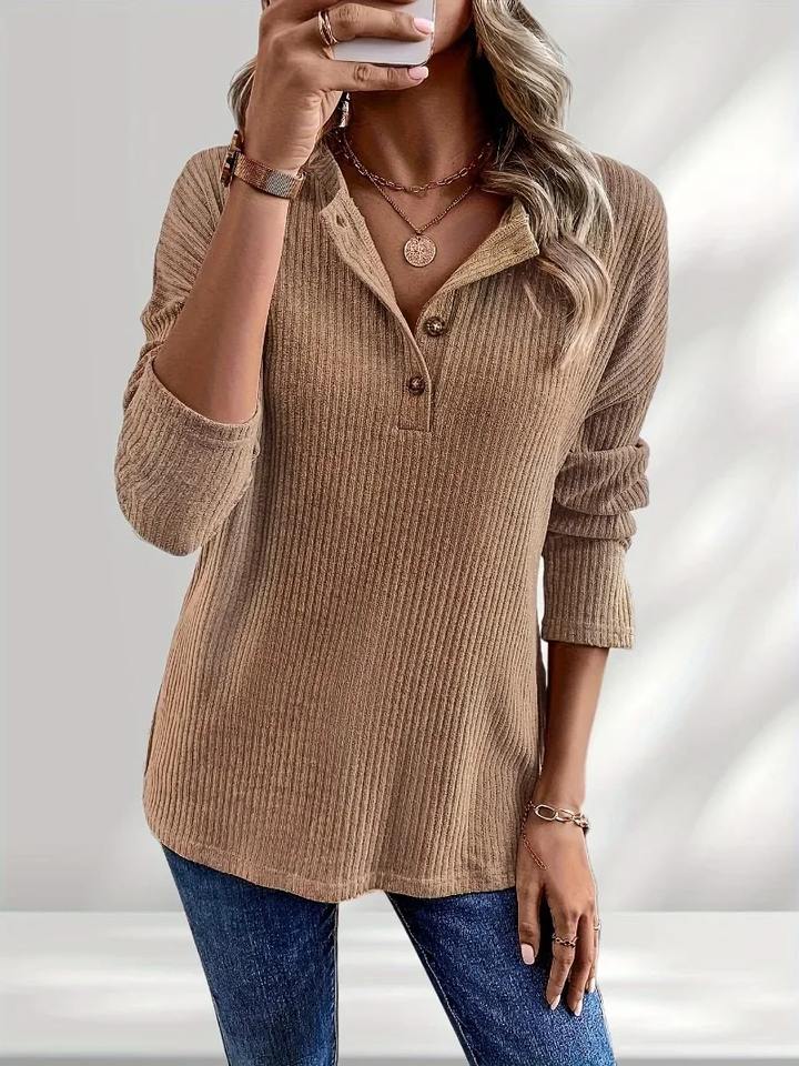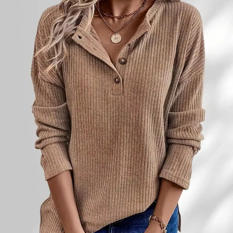 T-shirt décontracté en jersey tricoté à manches longues avec col polo, couleur unie simple, nouvelle mode d'automne, respirant