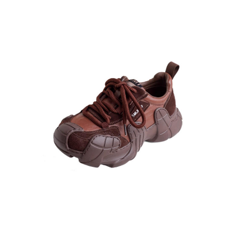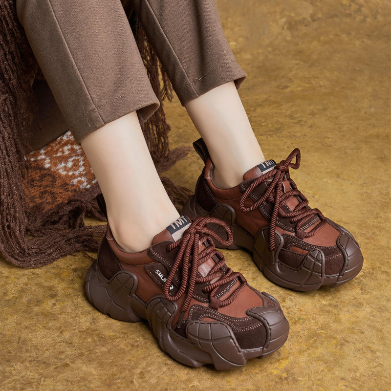 Nouvelles Chaussures Décontractées Automne en Cuir Véritable à Bout Ouvert et Plateforme Color Block, Respirantes et Légères, Style Dad Shoes