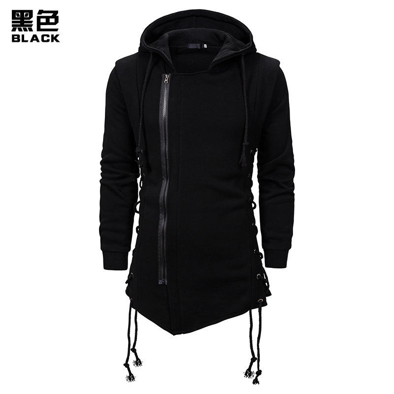 Autumn New Men's Hoodies & Sweatshirts Casual Solid Long Sleeve Slim Fit Dark Hooded Loose Jacket Coats Black US M
