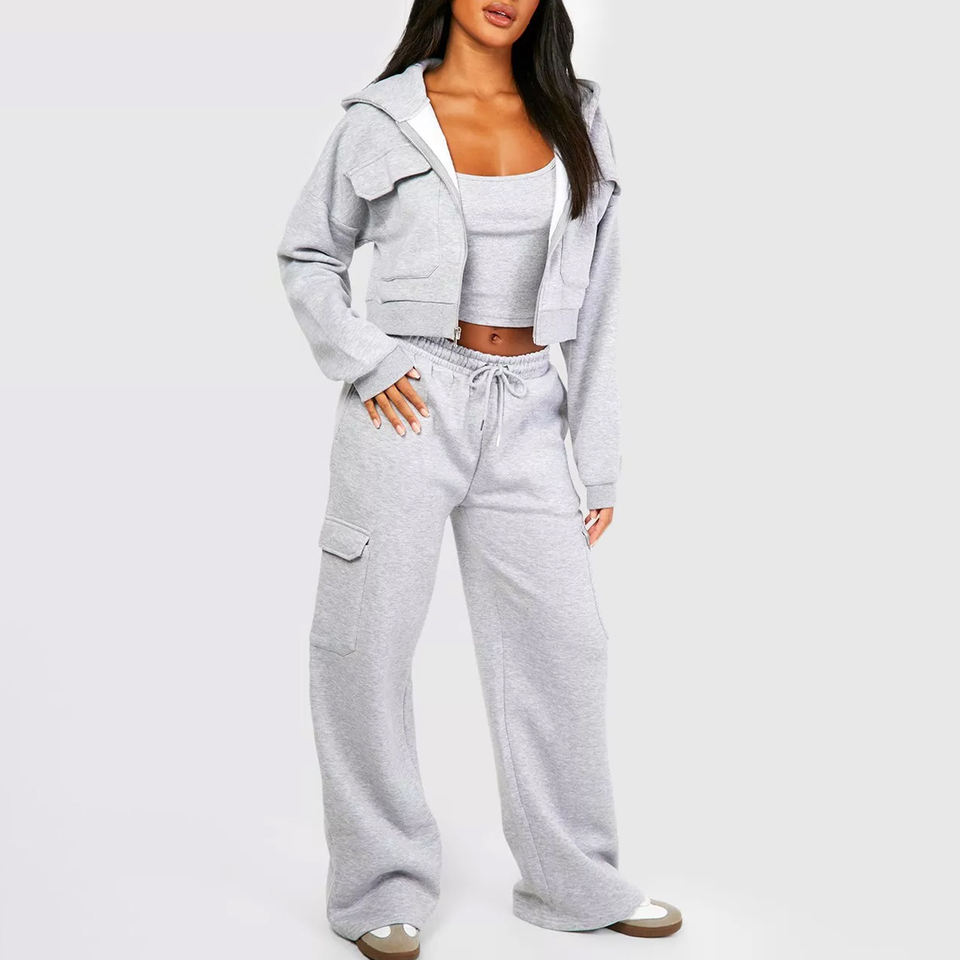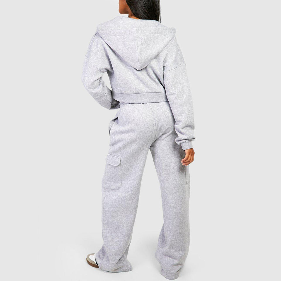 Autumn New Women's Casual Suit Solid Color Short Waist Hooded Sweatpants Breathable
