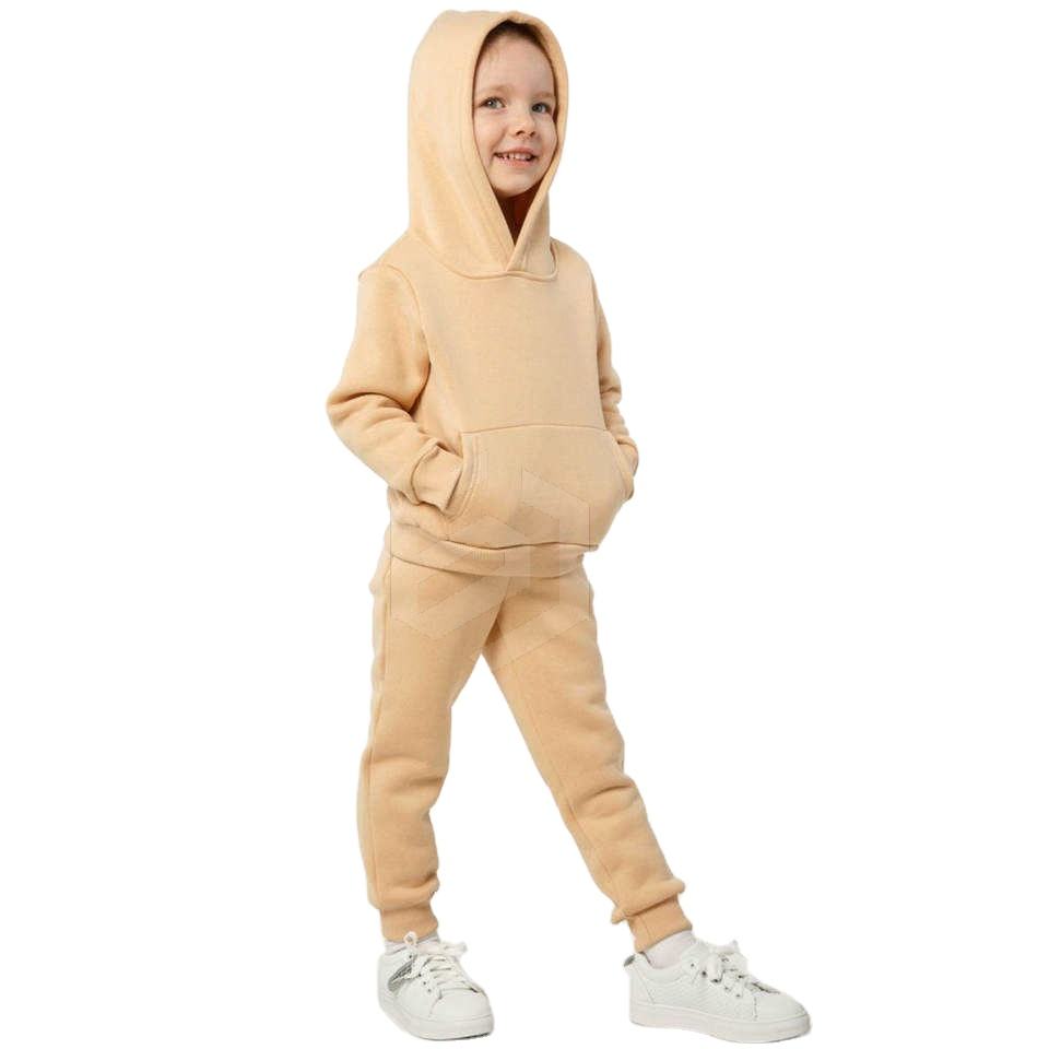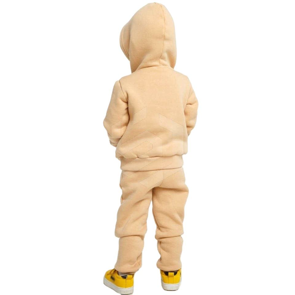 Ensemble de survêtement streetwear pour garçons grande taille, deux pièces, léger, en coton lavé à 100 %, avec sweat à capuche et pantalon de jogging, beige
