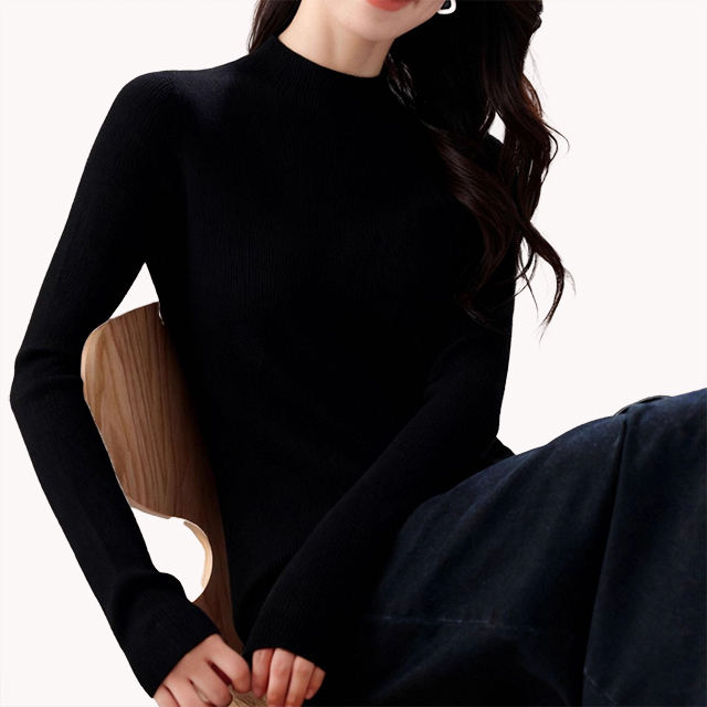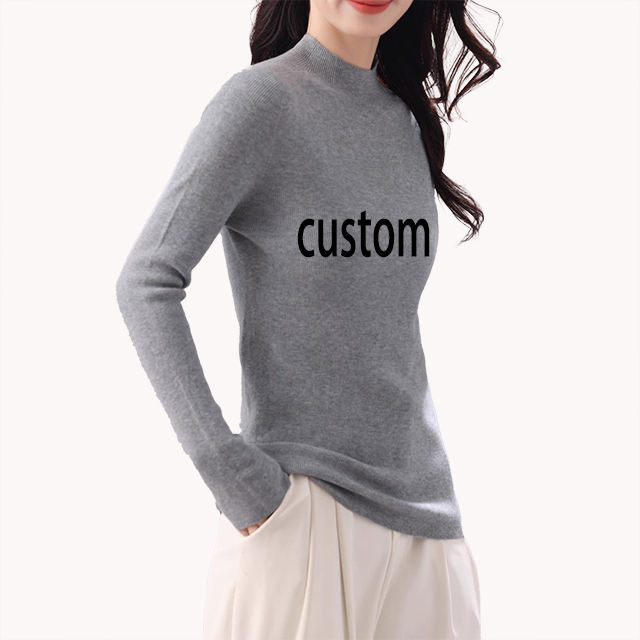 Pull en cachemire et soie sans couture pour l'automne, col montant, thermique, mode féminine, couleur unie, couche de base, tricot, coupe ajustée personnalisée
