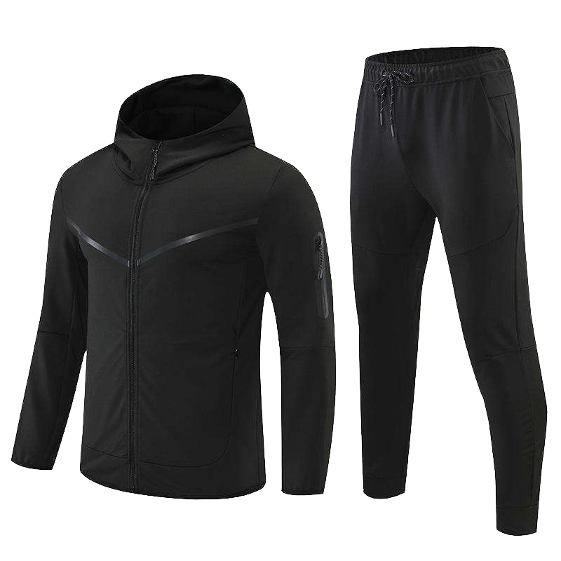 Ensemble de vêtements de sport pour homme automne, séchage rapide, 100% polyester, veste à col rond à manches longues, pantalon de survêtement à cordon de serrage, entraînement décontracté
