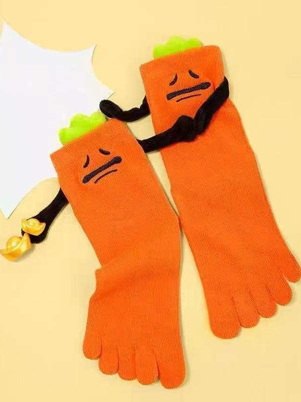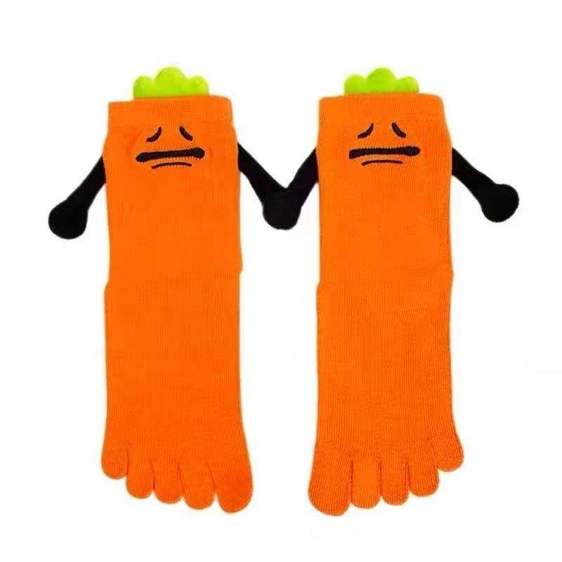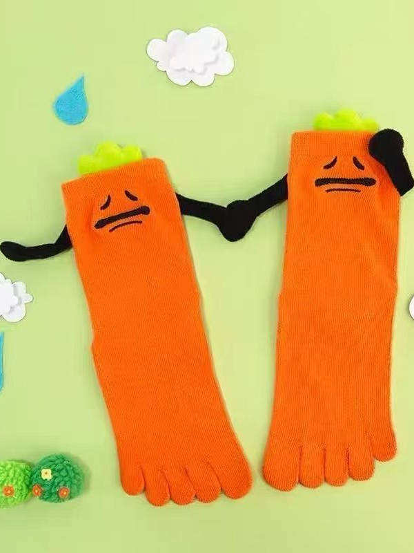 Automne été cinq orteils chaussettes mignon abstrait dessin animé mi-mollet équipage respirant siamois Lippo cynique carotte Sexy dessin animé chaussettes