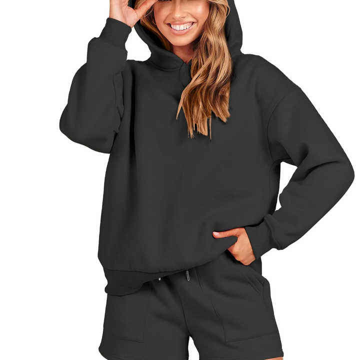 Automne deux pièces tenues solide femmes à capuche ensemble décontracté court ensemble femmes survêtements deux pièces ensembles