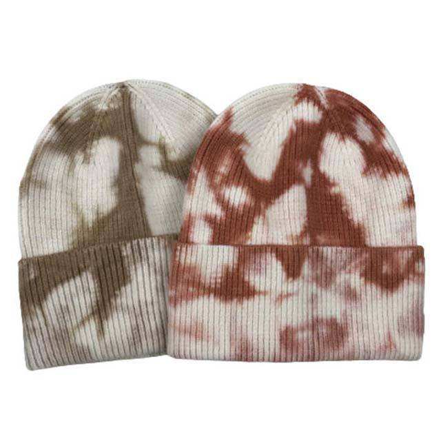 Bonnet en coton 100% côtelé à revers pour adultes, motif crâne tie-dye camouflage noir-gris profond, collection automne-hiver 2026