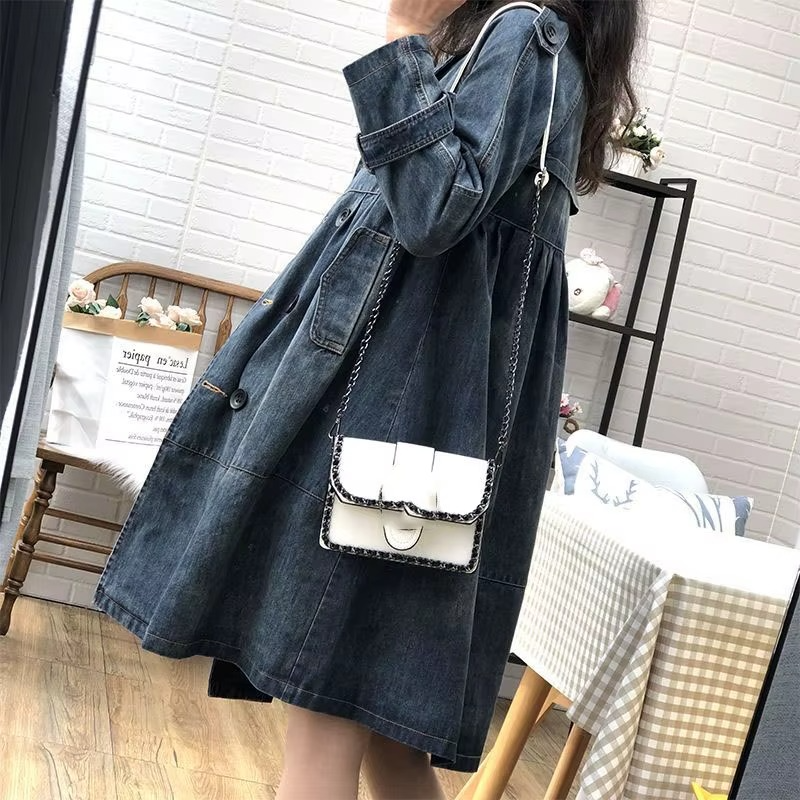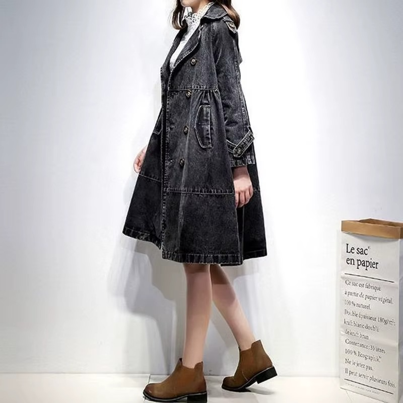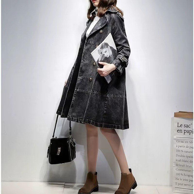 Autumn Winter Denim Women Jacket Coat Full Sleeves Vintage Windbreaker Mid Long Jean Cowboy Outerwear Female