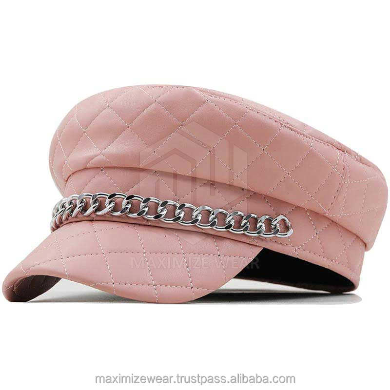 Casquette à visière en cuir PU avec boucle, béret d'extérieur pour filles.