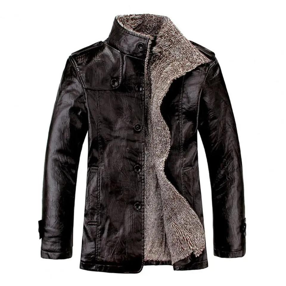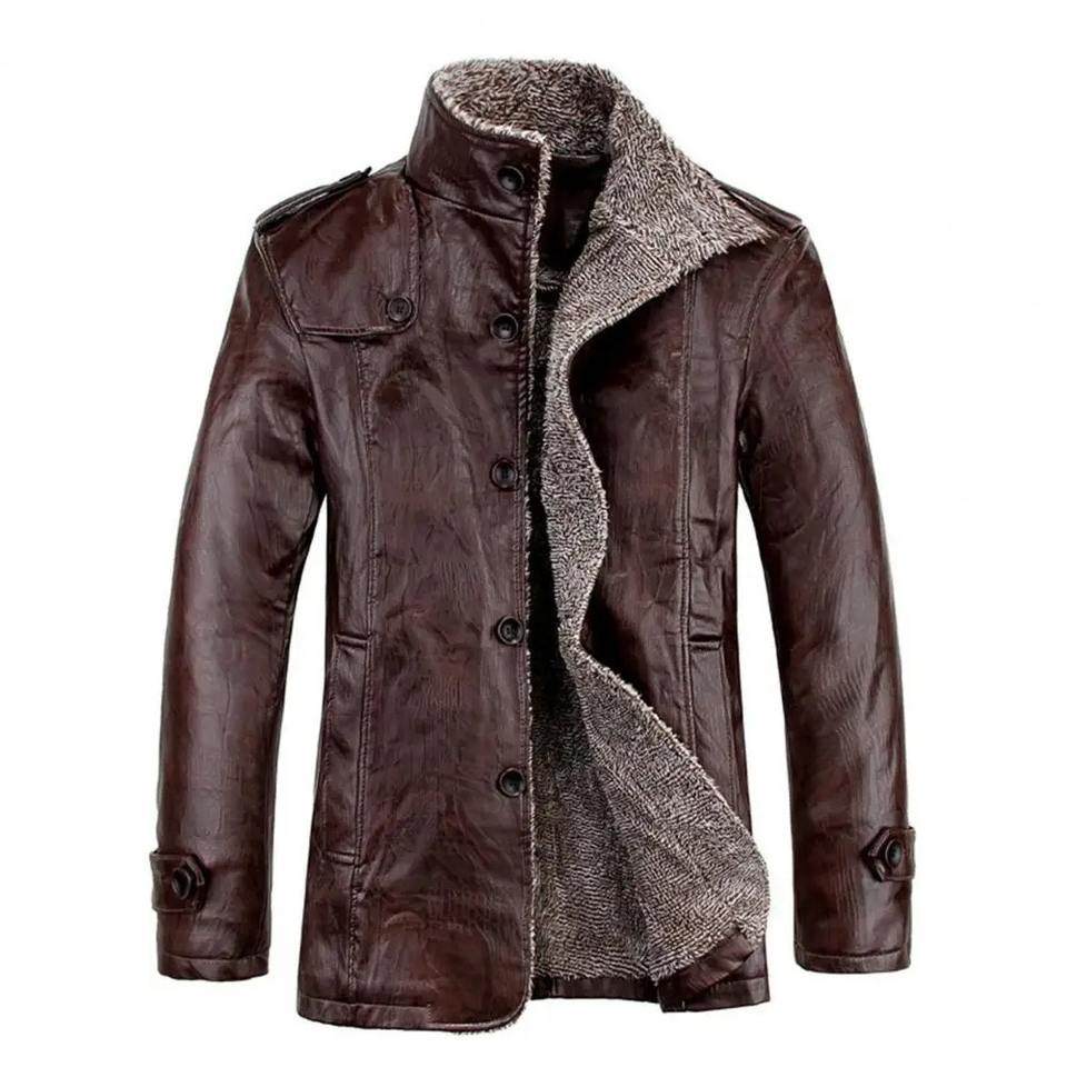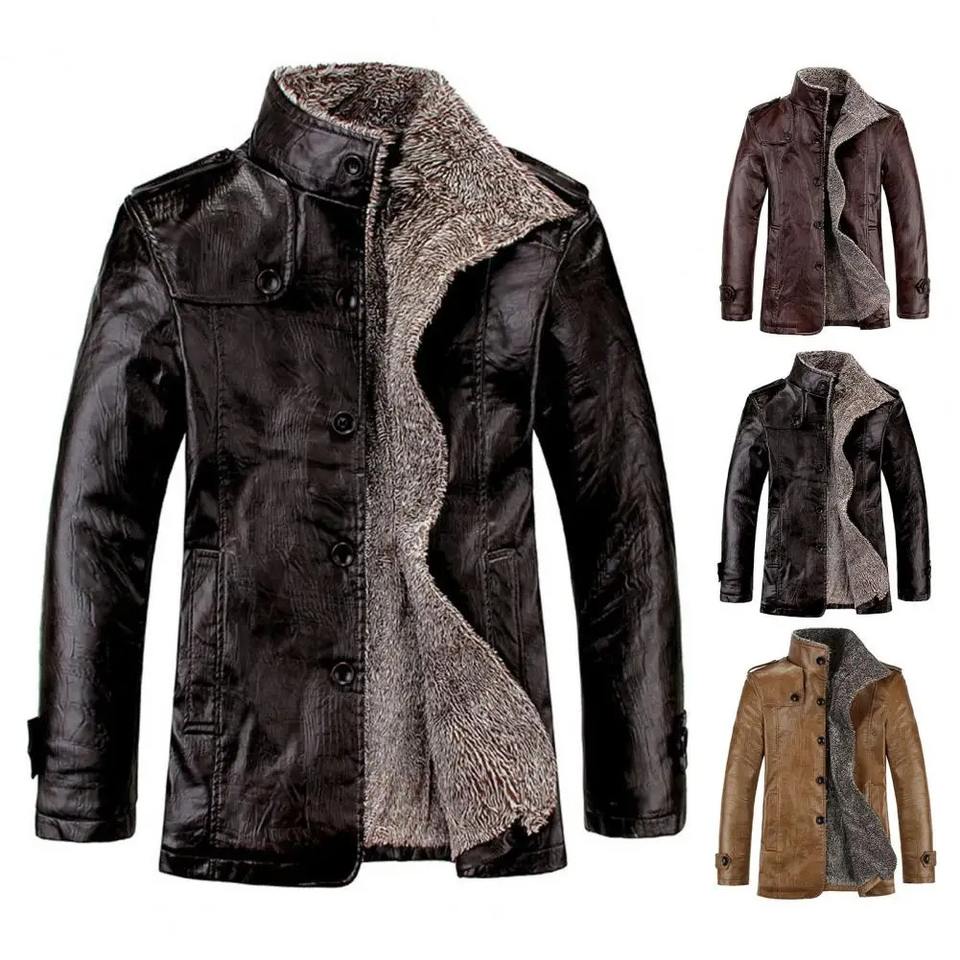 Automne hiver hommes manteau couleur unie en peluche Faux cuir affaires veste col rabattu simple boutonnage vêtements d'extérieur pour un usage quotidien