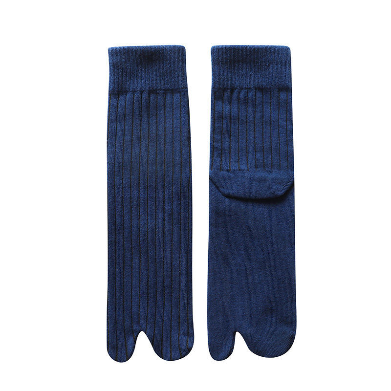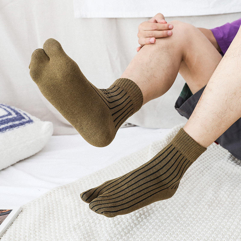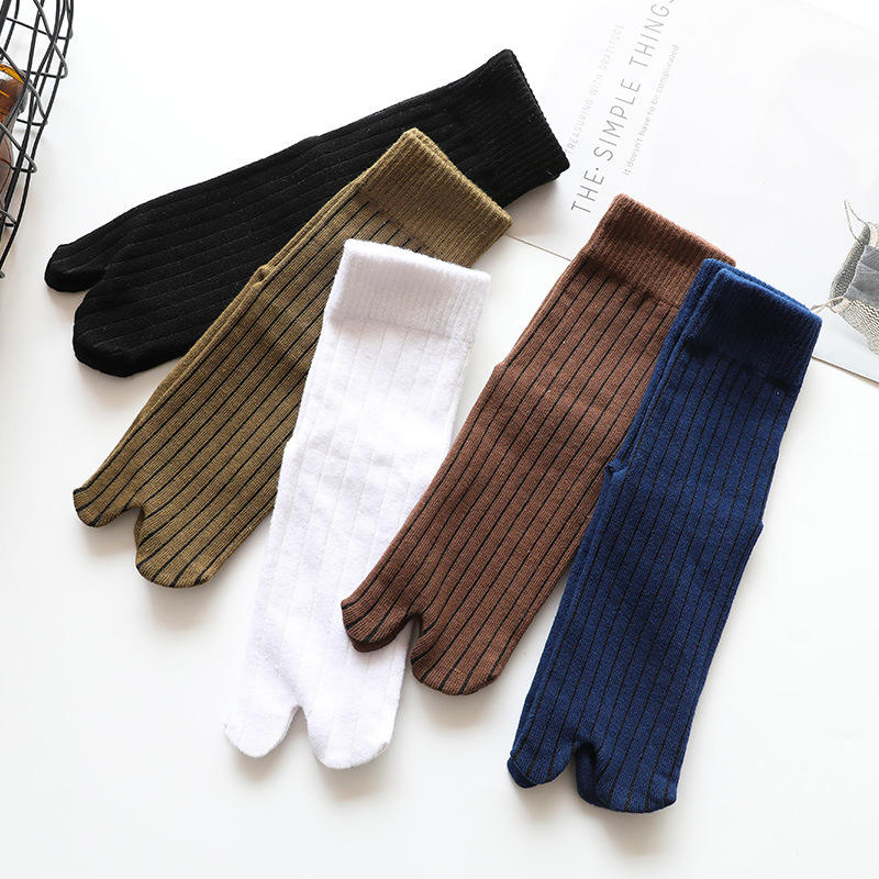 Autumn Winter Men Plain Color Japanese Sandal Tabi Separate Toe Sock Indoor Floor 2 Toe Socks 2 Finger Crew Dress Socks For Male