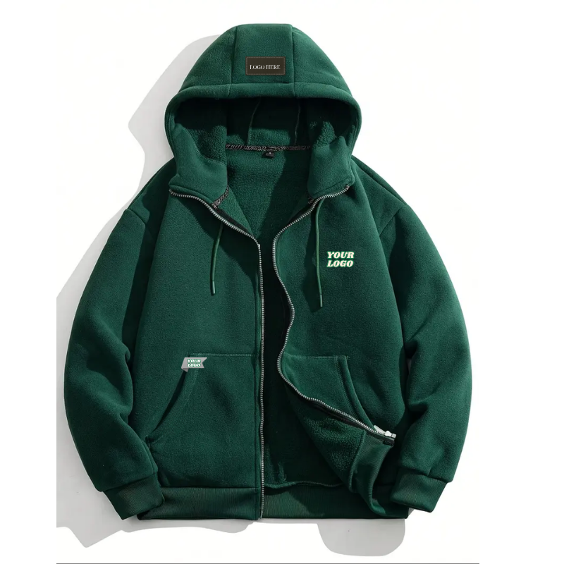 Automne hiver hommes 100% Polyester à capuche polaire veste pleine fermeture éclair coupe-vent thermique extérieur surdimensionné