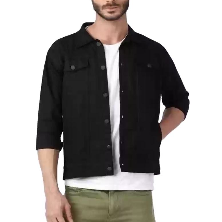 Autumn Winter Men's Denim Jacket Good Quality 100% Cotton New Design Black Oversize with Button Pocket Customized Logo