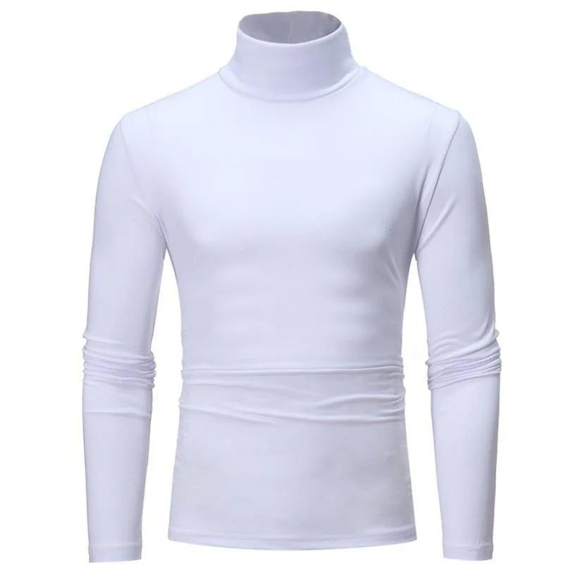 Automne hiver hommes col haut T-shirt Slim Fit mode haute élastique à manches longues décontracté respirant vêtements pull