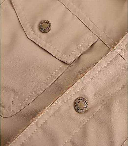 Autumn Winter Men's High Street Style Solid Pattern Canvas Windbreaker Jacket Thick Stand-Up Light Blue Collar Button Closure