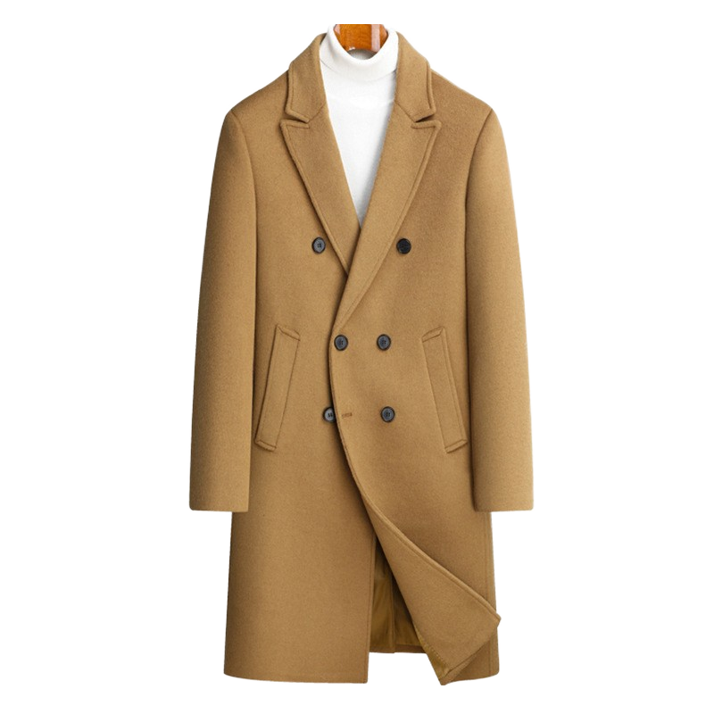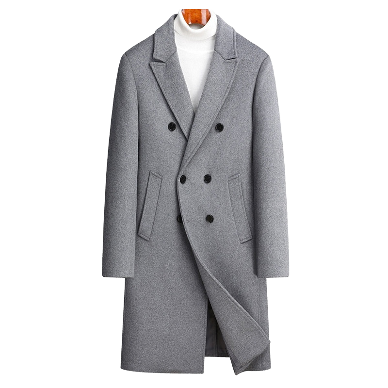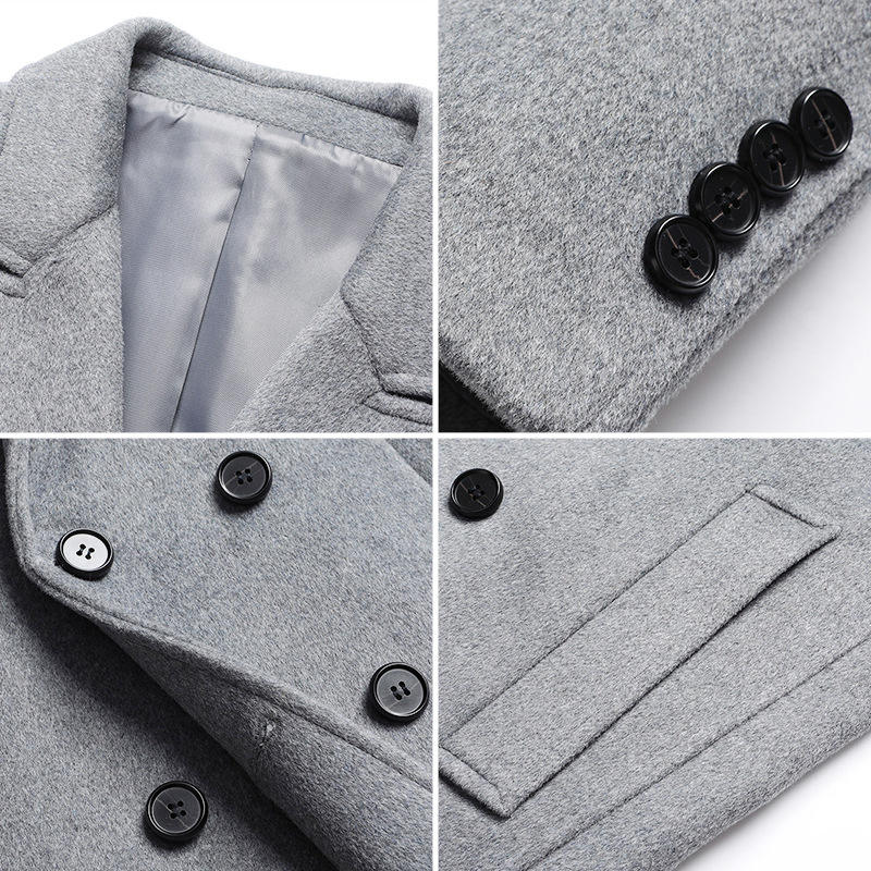 Manteau long en laine pour homme, automne-hiver, col montant, nouveau style, costume décontracté, finition en fourrure de lapin, tissu en laine