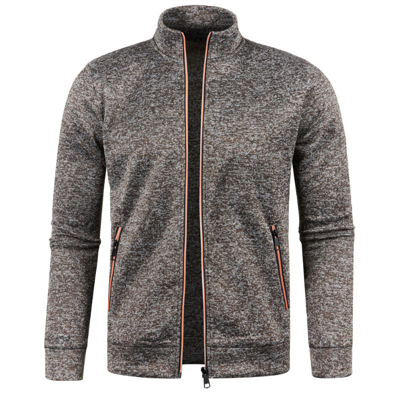 Automne hiver hommes Slim Fit pull décontracté veste confortable longue fermeture éclair bloc de couleur avec des manches minces en peluche teint uni