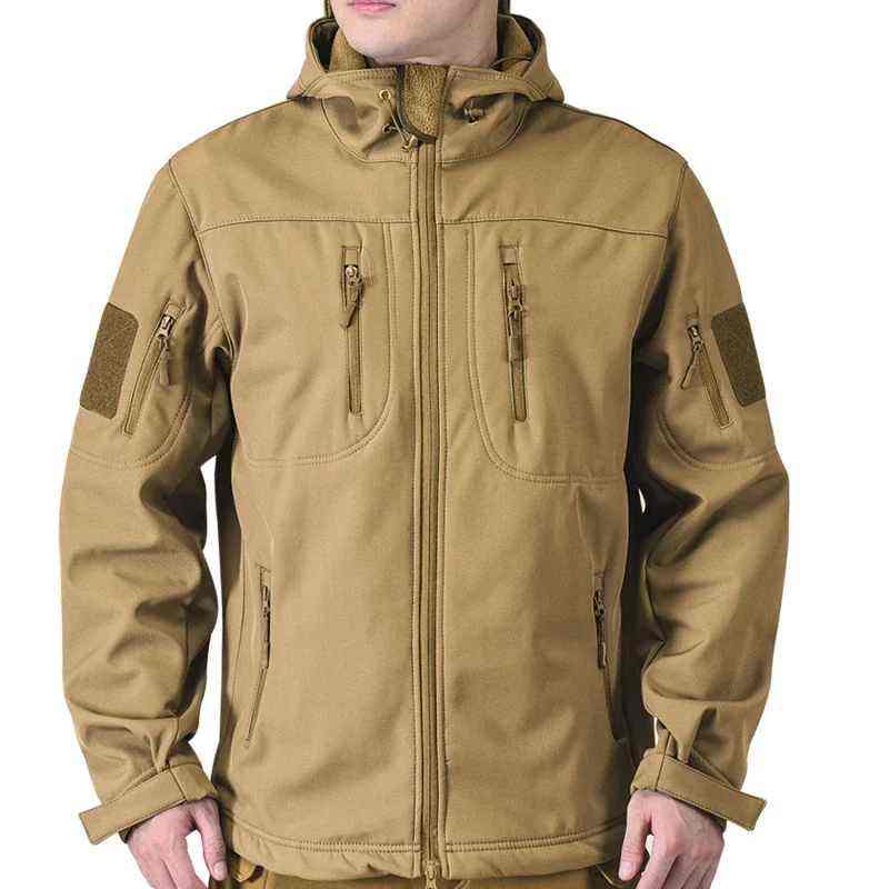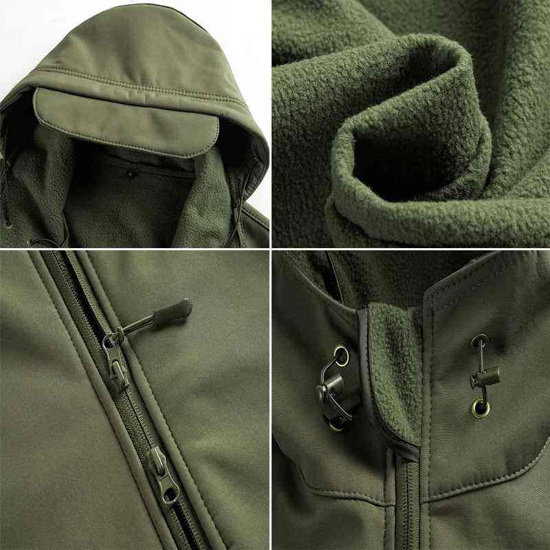 Veste tactique softshell imperméable coupe-vent à capuche pour homme, automne-hiver, avec fermeture éclair, col roulé imprimé, design respirant