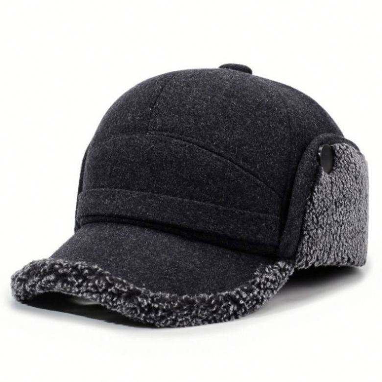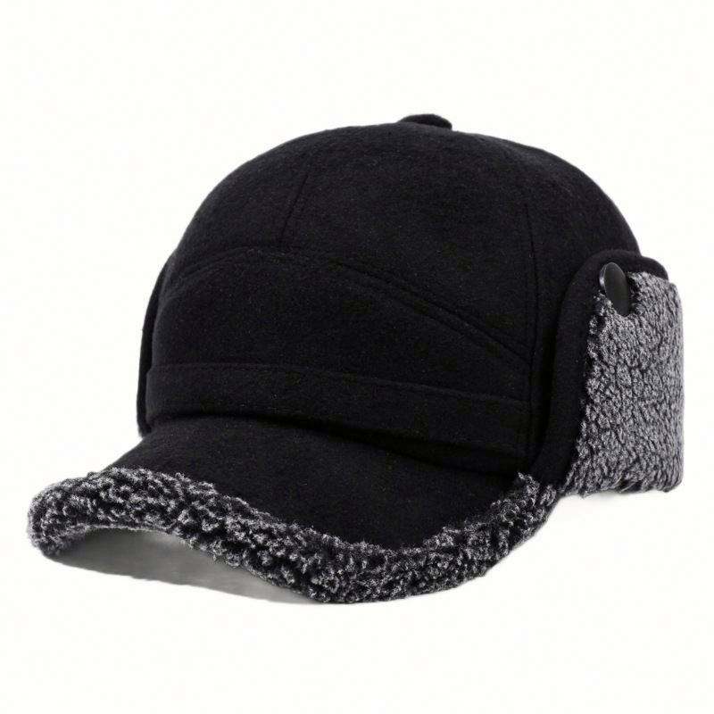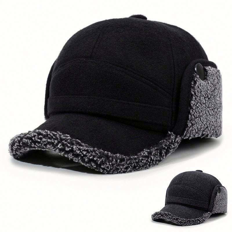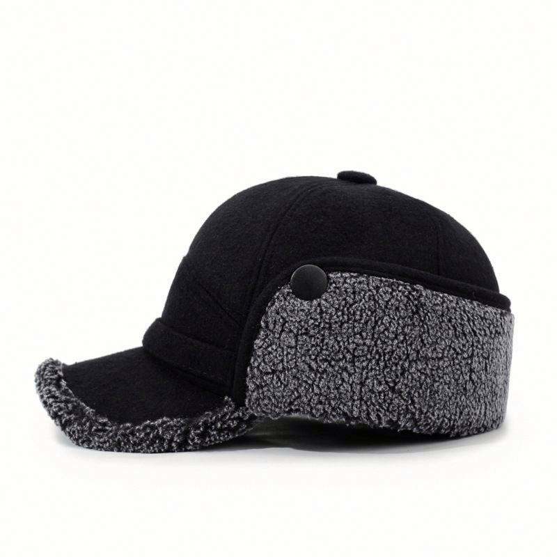 Nouvelle Collection Automne Hiver – Casquette de Baseball Épaisse en Caoutchouc Écologique pour Hommes Âgés, Chaudes et Décontractées avec Cache-Oreilles Fourrés pour l'Extérieur