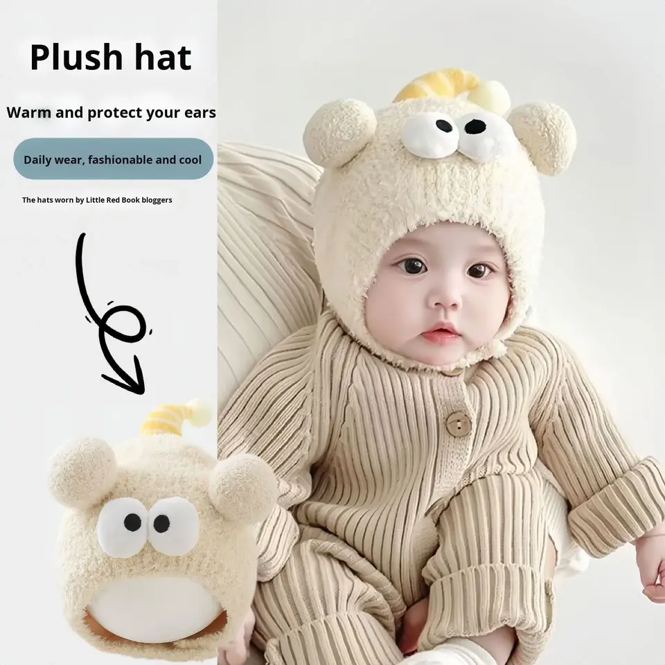 Autumn Winter New Baby Beanie Unisex Ear Protection Warm Cold-proof Double Ball Soft Waxy Cap Common Fabric Trendy Knitted Hat