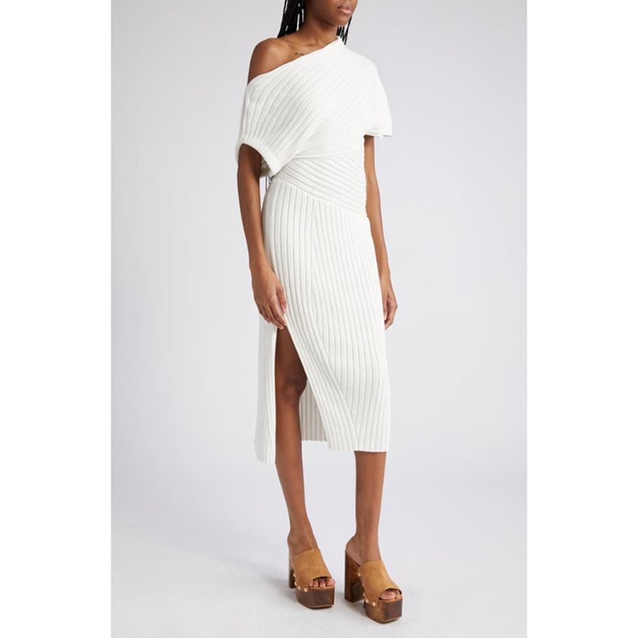 Robe pull blanche asymétrique, nouvelle collection automne/hiver