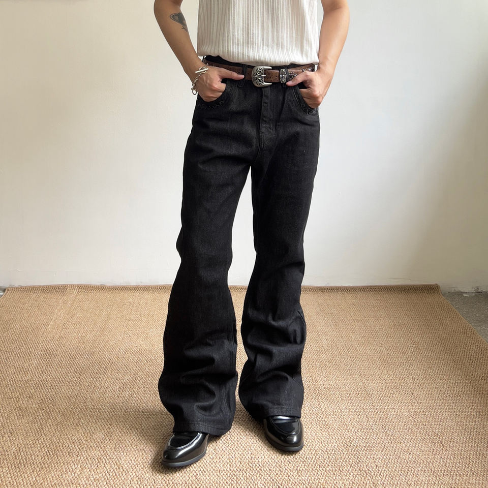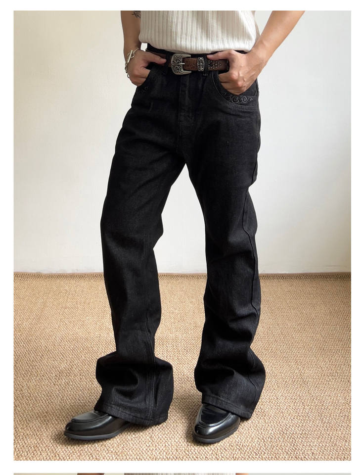 Jeans noirs à jambe droite tendance de style automne-hiver, coupe bootcut, unisexe, hip-hop, jeans de haute qualité