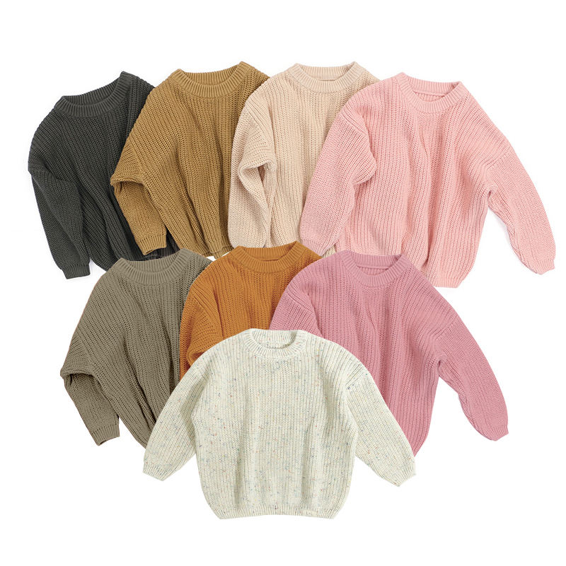 Pull-Over Couleur Unie Automne Hiver Prêt-à-Expédier pour Enfants, Haut Tricoté en Coton à Manches Longues, Pulls Oversize pour Bébés et Enfants