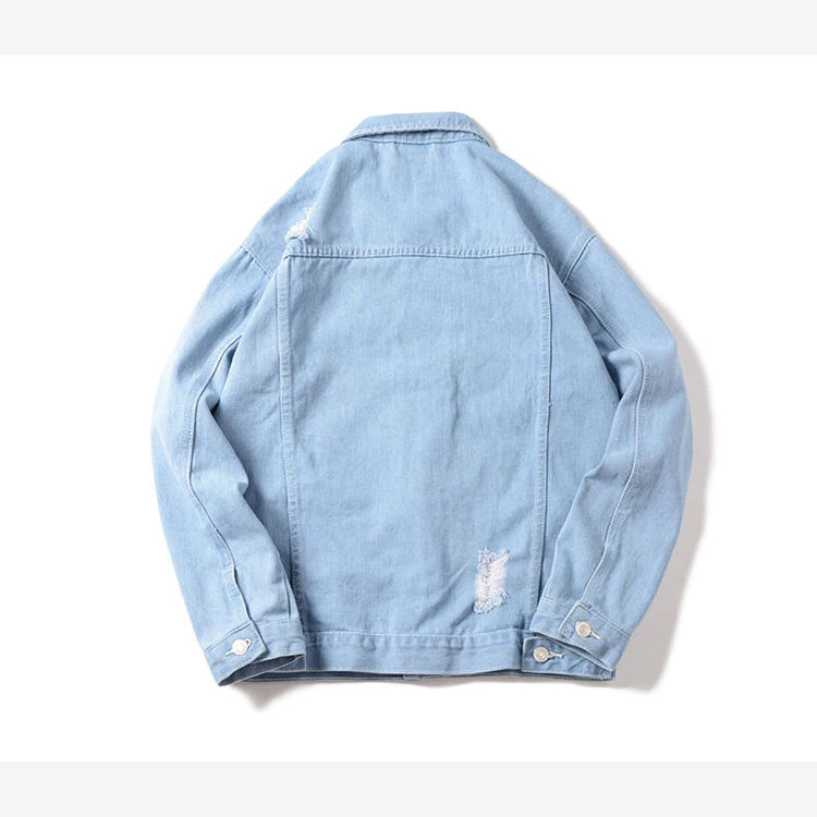 Autumn Winter Trendy Men's Denim Jacket with Ripped Thin Design Sheep Skin Leather Mens Jeans Outwear Cowboy Coat
