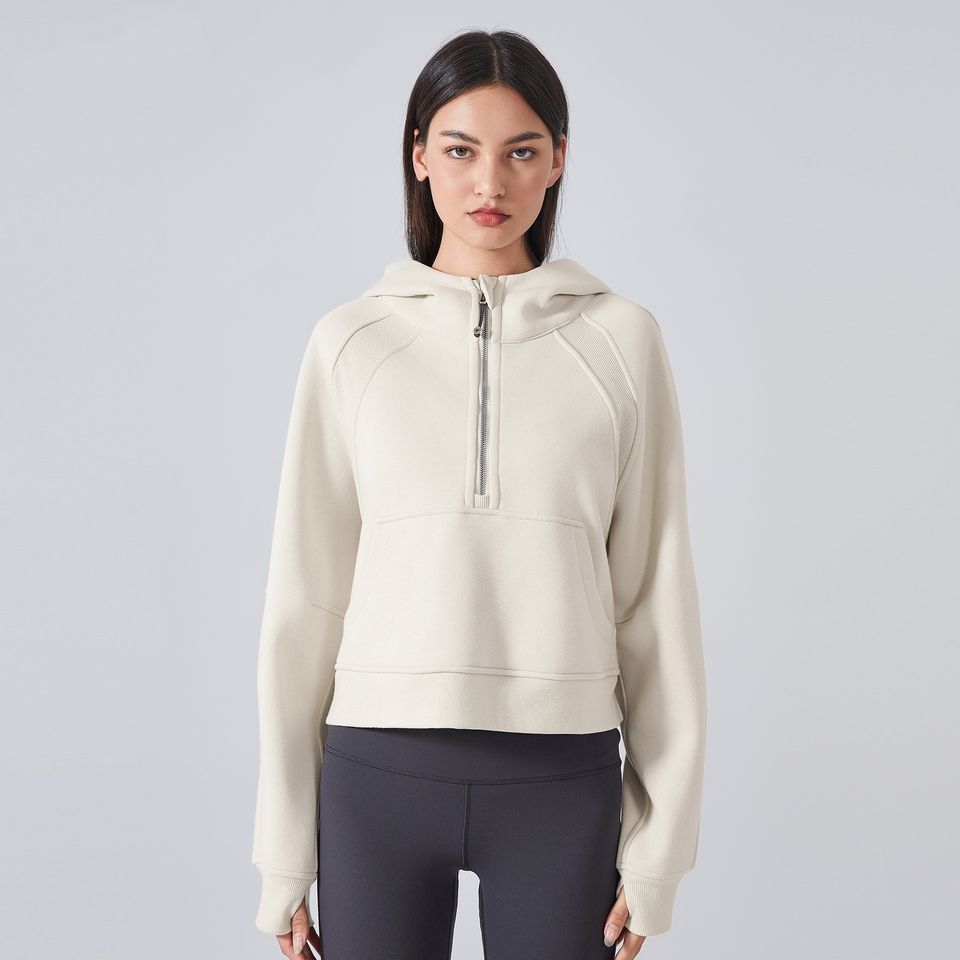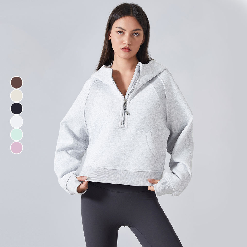 Autumn Winter Women's New Warm Velvet Sports Hoodie Half Zipper Yoga Suit With Four-Way Stretch Fitness Sports Hoodie Sweatshirt