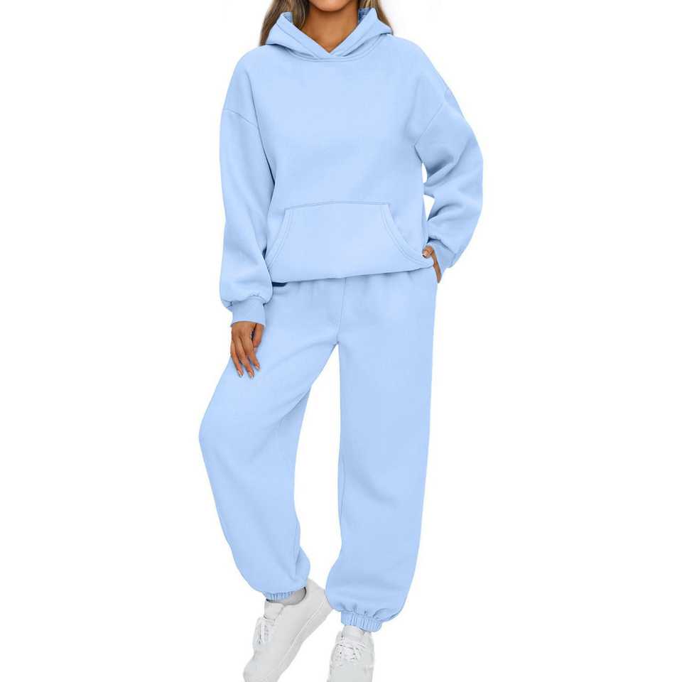 Autumn Winter Women's Sets Sports Two-Piece Set Zipper Jacket Wide Leg Pants Solid Windproof Loose Tracksuit Sweatshirt