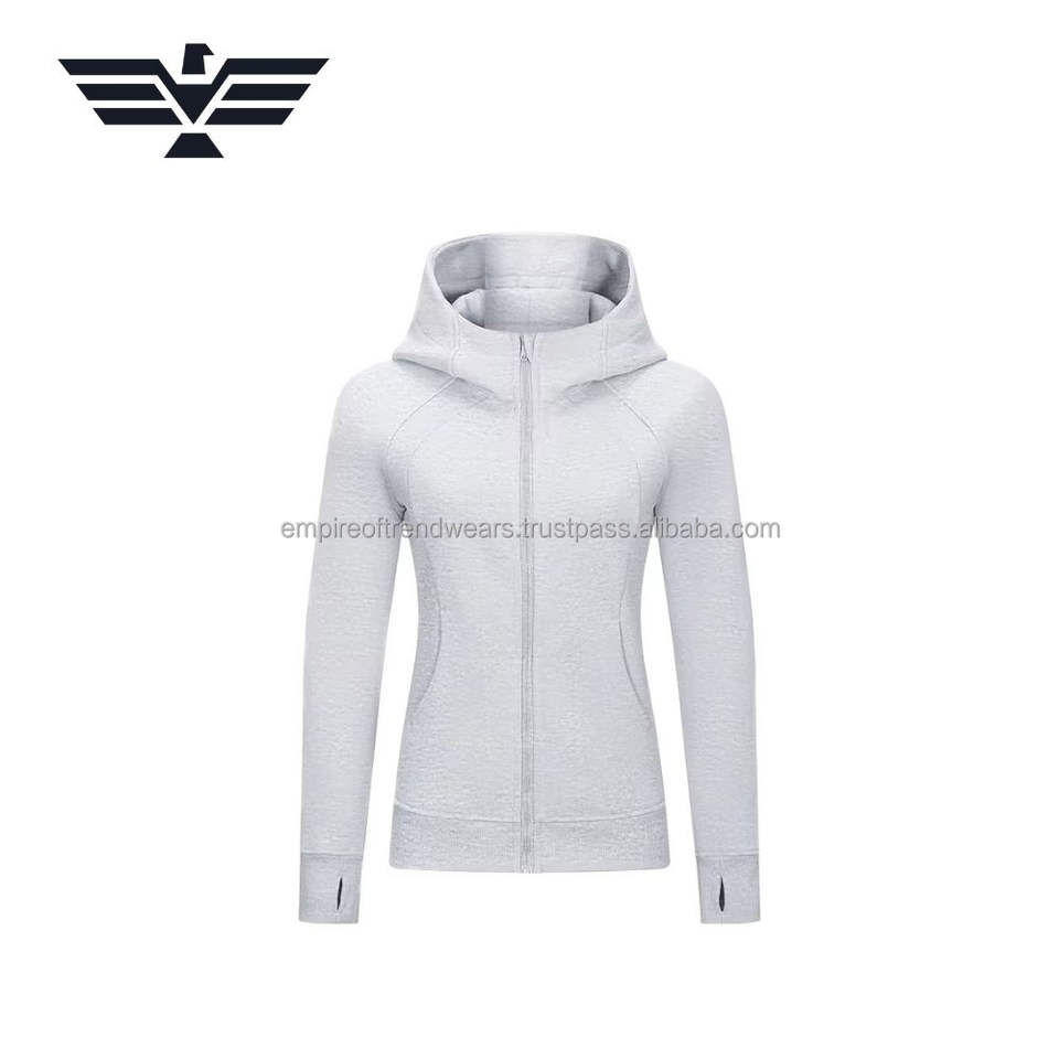 Autumn Winter Women's Slim Fit Full Zip Hoodie Jacket 100% Cotton Breathable Anti-Shrink Printed Casual High Quality Blue