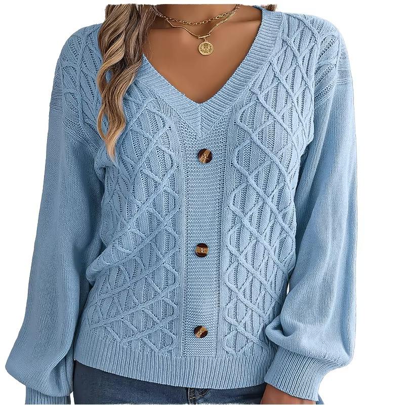 Pull à capuche torsadé à col en V et manches lanternes pour femme, couleur unie, 100 % acrylique, avec logo frontal – Collection Automne/Hiver