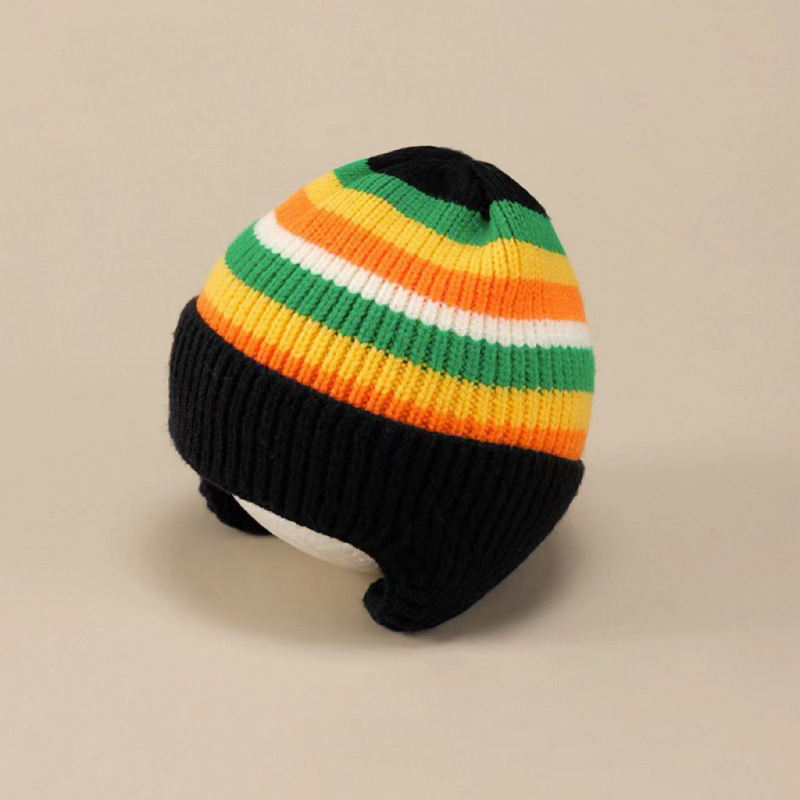 Automne hiver laine chapeaux pour bébé garçons filles arc-en-ciel imprimé tricoté couvre-chef avec polaire oreille casquettes coton tissu voyage-amical