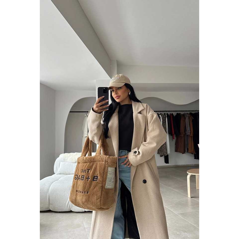 Autumn Women's Beige Fur Coat with Single Button Closure Dyed Parka with Breathable Reversible Pocket Detail