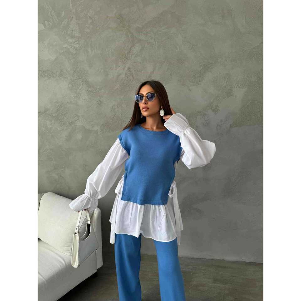 Ensemble de tricots en laine d'automne 1503 Chemise à motif rayé Détail brodé Technique lavée avec un magnifique imprimé brodé