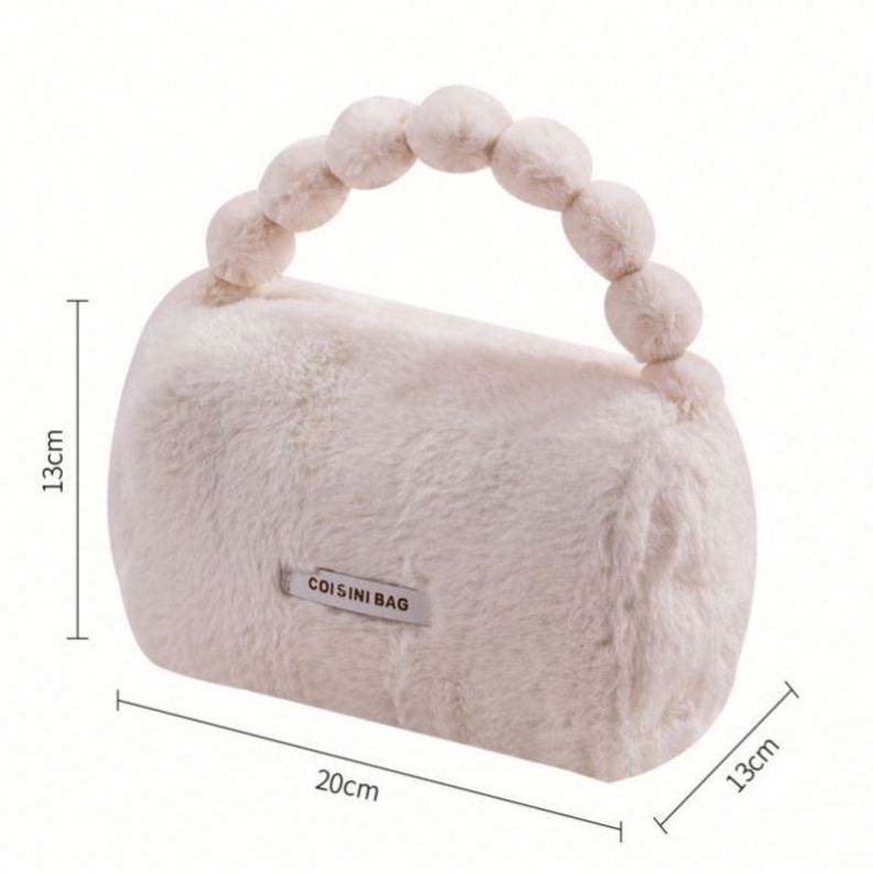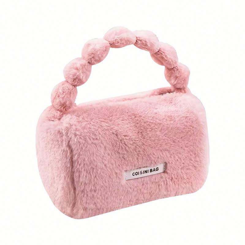 Sac à maquillage en fausse fourrure de lapin couleur bonbon pour l'automne et l'hiver, sac à main portable mignon rose en peluche, sac fourre-tout pour femme