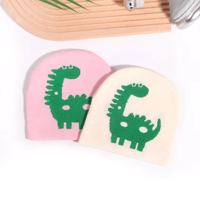 Autumn/Winter Cute Dinosaurs Jacquard 100% Acrylic Soft Solid Color Adjustable Beanie Hats for 3-8 Years Unisex Children