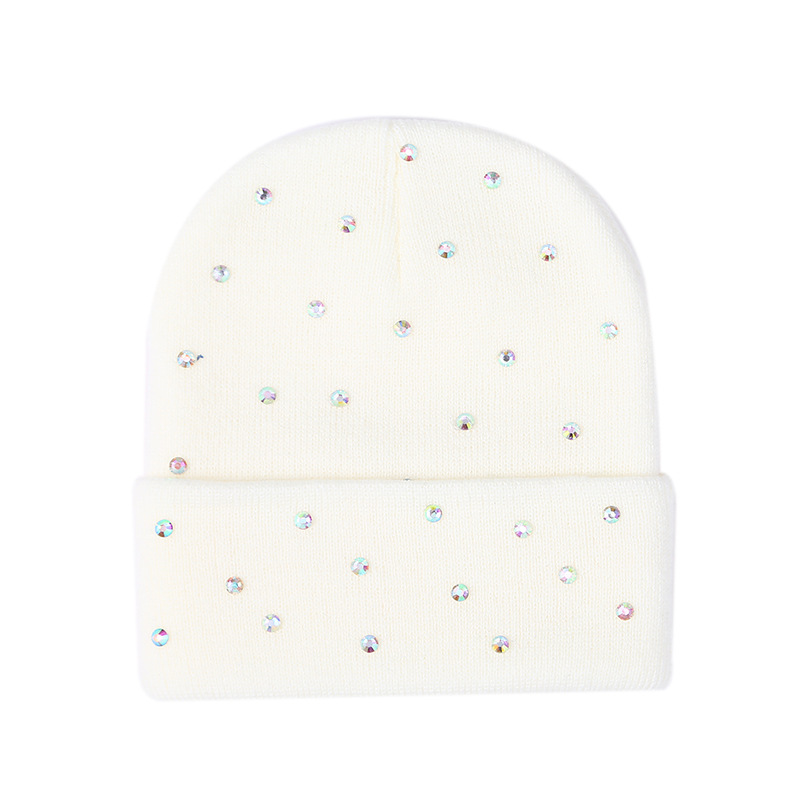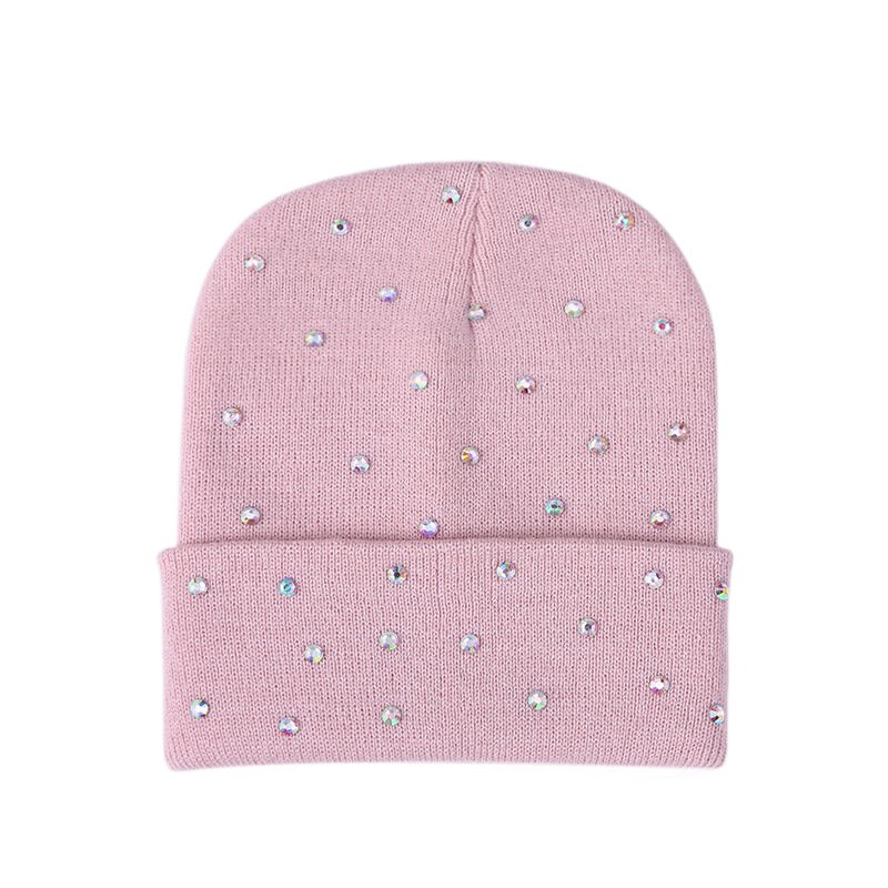 Chapeau en laine de lapin avec strass pour femmes, mode automne-hiver, chaud, coupe-vent, bonnet en tricot