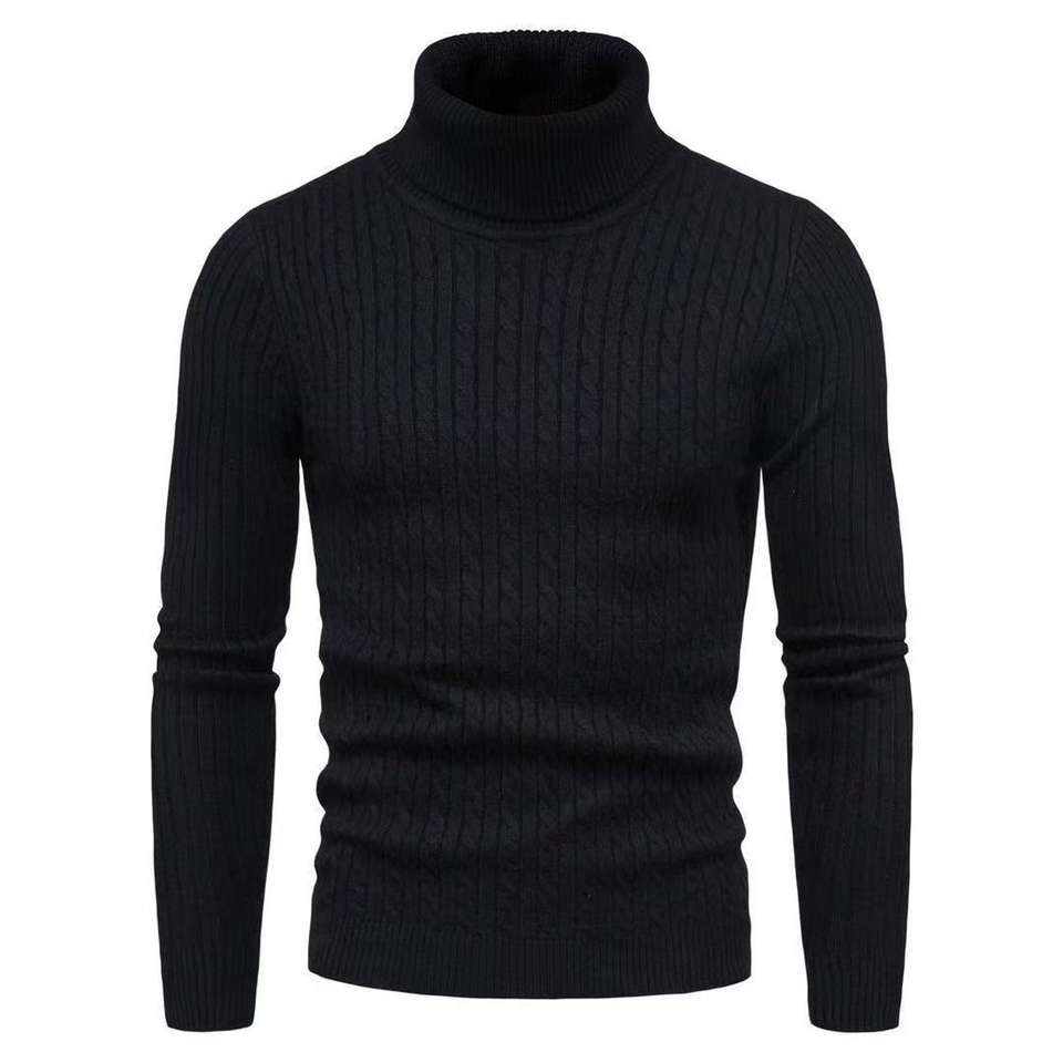 Automne et hiver hommes couleur unie Slim pull à col roulé hommes à la mode pull torsadé pull pour hommes
