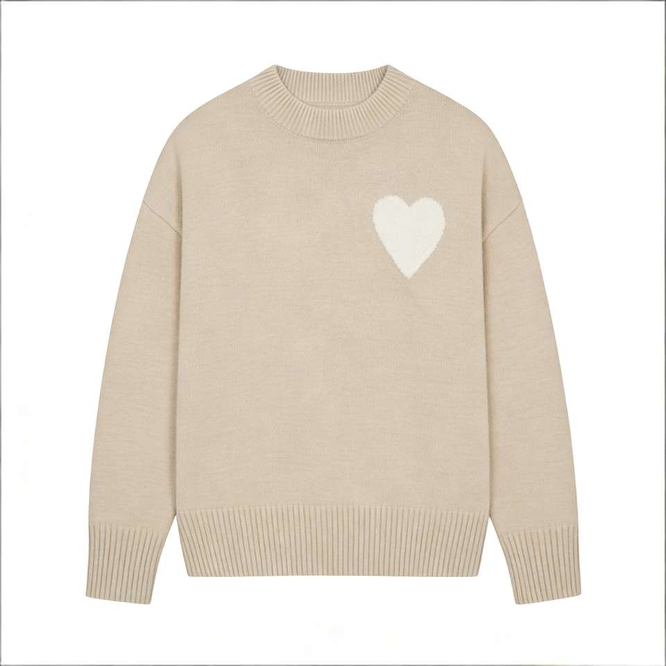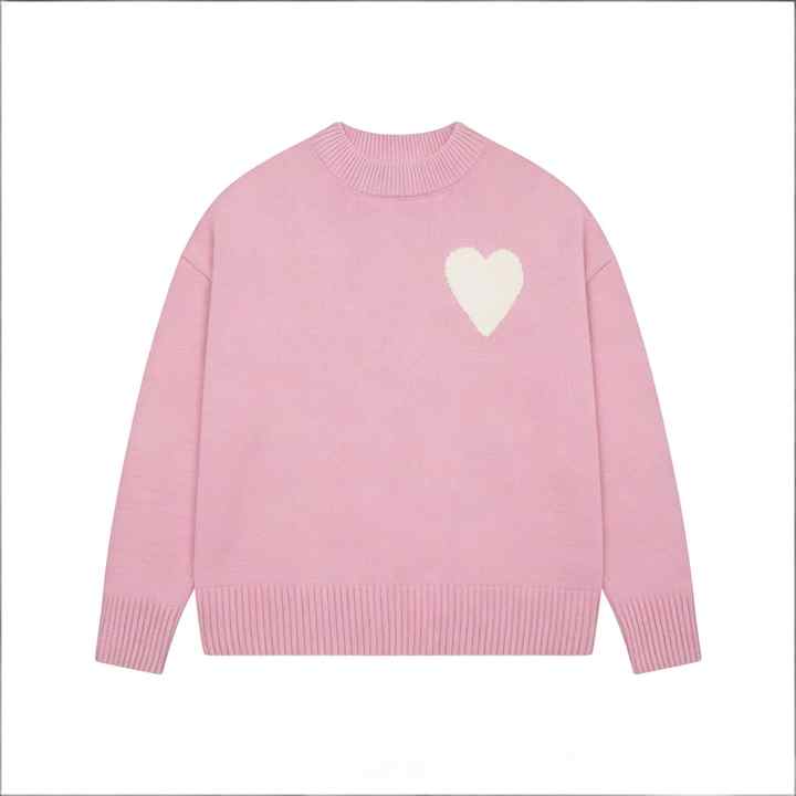 Pull en coton respirant à col montant, rayé, motif cœur, décontracté, pour homme et femme, nouvelle collection automne-hiver